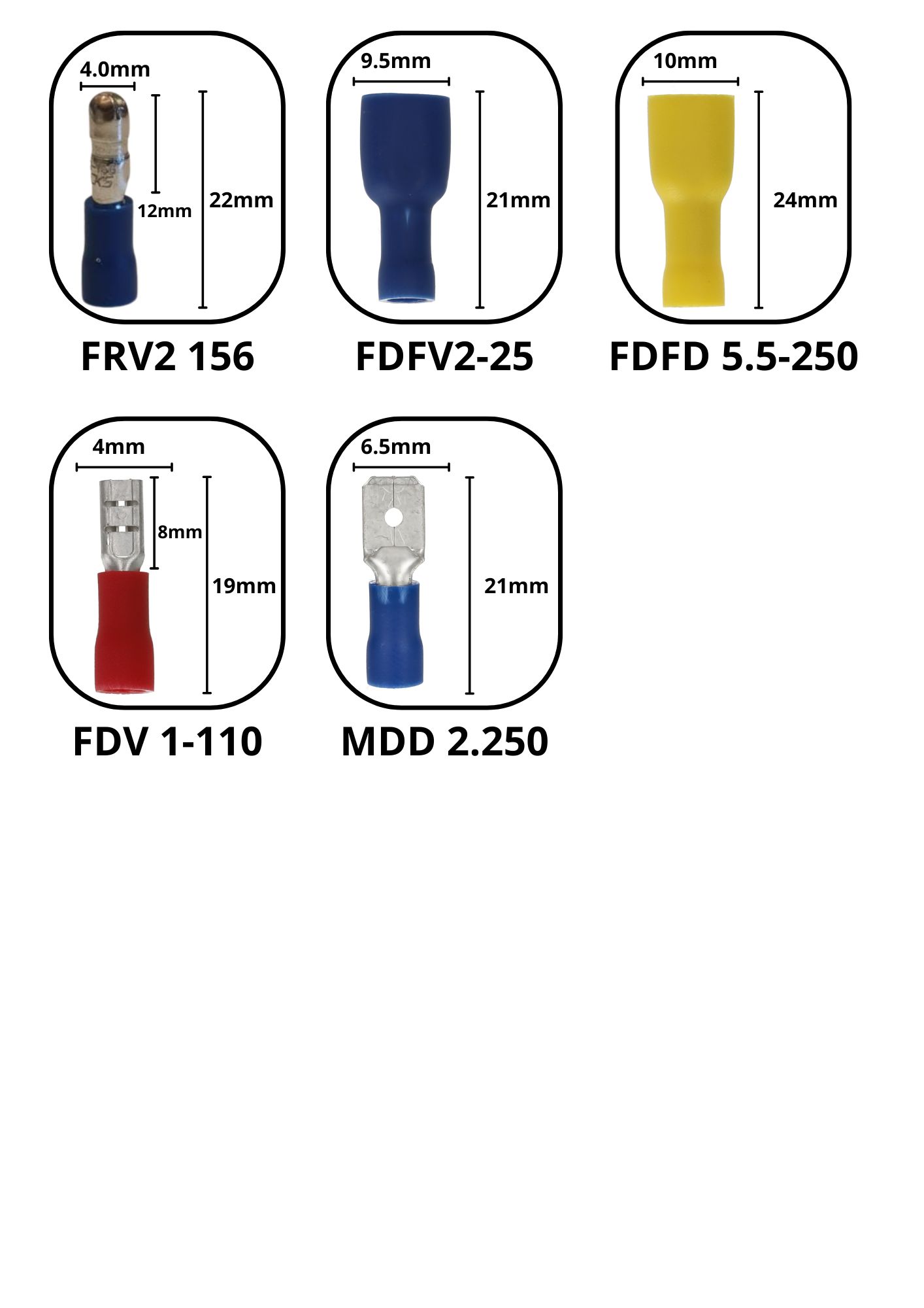CAJA SURTIDO TERMINALES ELECTRICOS 110 PIEZAS 06 TAMANOS