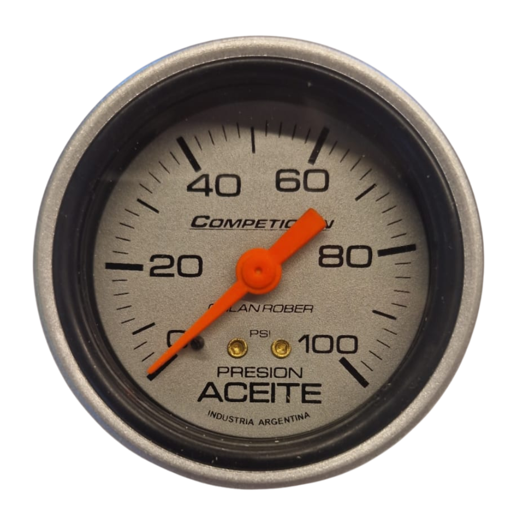 MARCADOR PRESION ACEITE MECANICO 0-100PSI 60MM COMPETICION PLATA